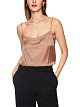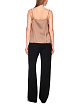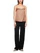 Коричневый элегантный топ выполнен из струящейся вискозы с отделкой из роскошного кружева в тон. Изделие дополнено тонкими регулируемыми бретелями Такой изящный топ можно сочетать и с брюками, и с юбками.