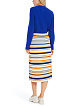 Плиссированная юбка в яркую полоску выполнена из трикотажа на основе переработанной вискозы. Дополнена эластичным поясом и лаконичным фирменным логотипом. Эффектная юбка для ваших модных экспериментов.