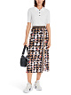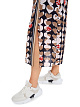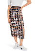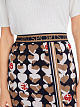 Яркая юбка со сплошным принтом в виде сердец выполнена из легкой струящейся вискозы. Дополнена широким эластичным поясом с логотипом, разрезом сбоку и декоративной трикотажной отделкой. Стильная юбка для непринужденных повседневных образов с кедами или кроссовками.