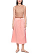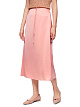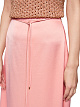 Элегантная розовая юбка миди выполнена из струящегося атласа с блеском. Она застегивается на потайную молнию сбоку, что придает ей утонченный вид. Изюминкой является пояс на талии со шнурком, который украшен стразами — стильный аксессуар, который добавляет образу гламура.