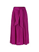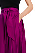 Широкая юбка выполнена из переработанной ткани с блеском. Изделие длины миди дополнено поясом с завязками и боковыми карманами. Застегивается на молнию. Элегантная юбка для женственных образов.