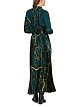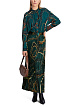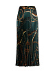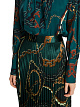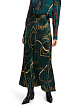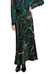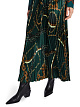 Зеленая плиссированная юбка длины миди выполнена из струящейся ткани. Украшена эффектным принтом с цепями. Дополнена широким эластичным поясом и молнией. Прекрасно подходит для элегантных женственных образов с блузами.