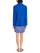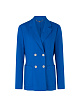 Синий двубортный пиджак, выполненный из традиционного льна и вискозы с добавлением эластана. Дополнен воротником с лацканами, накладными карманами и небольшими разрезами на рукавах. Яркий пиджак для стильных деловых образов.