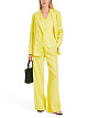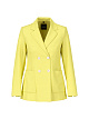 Желтый двубортный пиджак, выполненный из традиционного льна и вискозы с добавлением эластана. Дополнен воротником с лацканами, накладными карманами и небольшими разрезами на рукавах. Яркий пиджак для стильных деловых образов.
