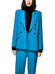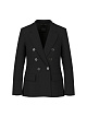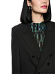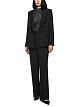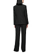 Черный блейзер приталенного кроя выполнен из эластичной ткани. Дополнен отложным воротником с лацканами и карманами с клапанами. Изысканный блейзер для строгих образов.