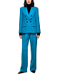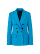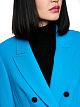 Голубой блейзер приталенного кроя выполнен из эластичной ткани. Дополнен отложным воротником с лацканами и карманами с клапанами. Изысканный блейзер для строгих образов.
