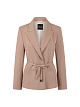 Светло-коричневый приталенный блейзер выполнен из легкой эластичной ткани. Модель с отложным воротником с лацканами и боковыми карманами отличается тонким поясом на талии, который выгодно подчеркивает силуэт. Превосходно дополнит строгие образы.