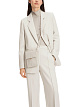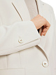 Бежевый однобортный пиджак выполнен из эластичной ткани с добавлением натурального хлопка и вискозы. Дополнен воротником с лацканами, прорезным карманами и небольшим разрезом сзади. Элегантный пиджак для деловых образов.