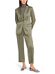 Однобортный приталенный пиджак цвета хаки выполнен из мягкой атласной ткани. Дополнен воротником с лацканами, карманами с клапанами и длинными рукавами. Элегантный и стильный пиджак для нежных женственных образов.