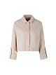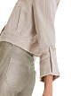 Бежевая укороченная джинсовая куртка прямого кроя выполнена из эластичного итальянского денима Candiani на основе натурального хлопка. Дополнена двумя врезными карманами, цветочной вышивкой на задней части, а края отделаны тонкой бахромой. Элегантные пуговицы с логотипом и плиссированные детали на рукавах подчеркивают женственный образ.
