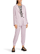 Удлиненный жакет прямого кроя выполнен из мягкой эластичной ткани с глянцевой поверхностью на основе вискозы. Подвернутые и зафиксированные рукава придают фасону сходство с блузой. Жакет дополнен лацканами и накладными карманами и застегивается на две пуговицы. для создания комплекта сочетайте жакет с аналогичными брюками в спортивном стиле.