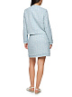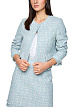 Нежно-голубой элегантный жакет прямого кроя выполнен из хлопковой ткани букле с изысканной грубой фактурой. Бахрома по округлому вырезу и подолу, а также декоративные клапаны придают модели современный вид. Женственные жакет для утонченных образов с юбкой в тон.