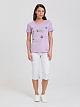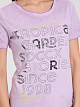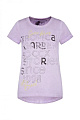 Тропический сад! Футболку от SOCCX украшает крупный принт с надписью. Оформление акцентировано металлическими камнями. Футболка имеет круглый вырез с необработанными краями,а так же задняя часть более длинная и округлая.