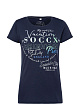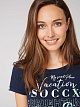 Легкая футболка в свободном стиле от SOCCX отличается классическим круглым вырезом, небольшими боковыми разрезами и спортивными закатанными рукавами. Спереди - декоративный принт с блестками. Её очень удобно носить, и она отлично сочетается с любимыми джинсами. Модель ростом 174 см носит размер S.