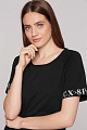 Платье-футболка длиной до колена от SOCCX — минималистичное, очень удобное и имеет неповторимый вид. Модель с женственным круглым вырезом и карманами в боковых швах. Рукава с логотипом по низу привлекают внимание, а верхняя часть спины сияет солнцем из драгоценных камней.